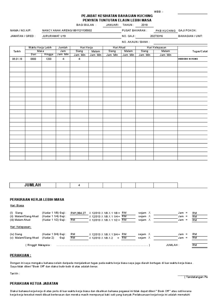 Contoh Borang Kerja Lebih Masa