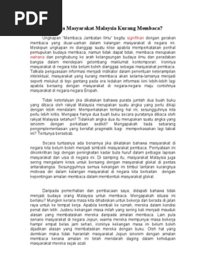 Minat Membaca Dikalangan Rakyat Malaysia Rhe