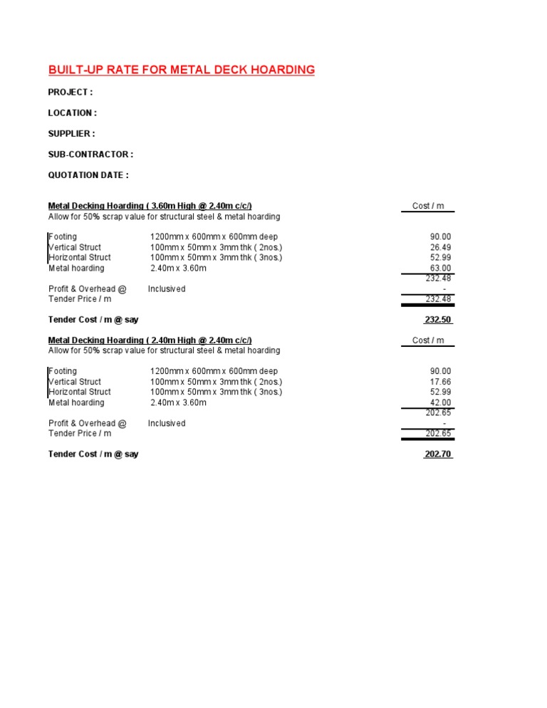Build Up Rate Format Concretor Built Up Rate For Ready Mixed Concrete Tender File No Project Title Work Location Quotation Date Subject Build Up Rate Course Hero