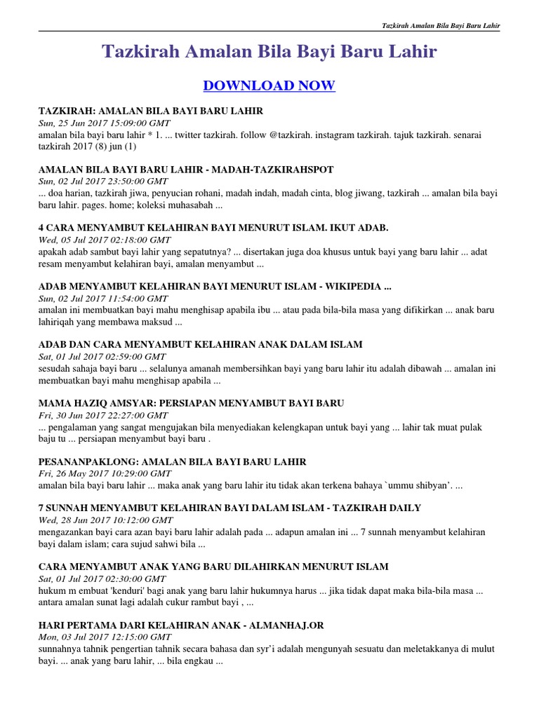 Tazkirah Amalan Bila Bayi Baru Lahir Pdf