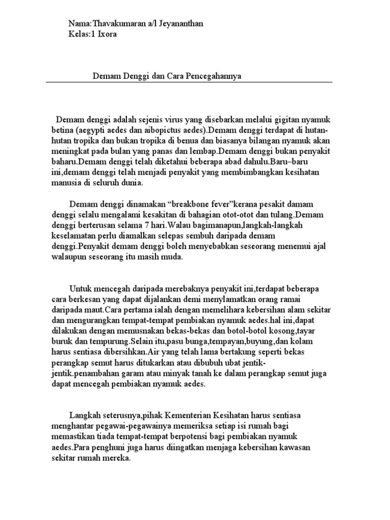 Cara Mencegah Demam Denggi Karangan