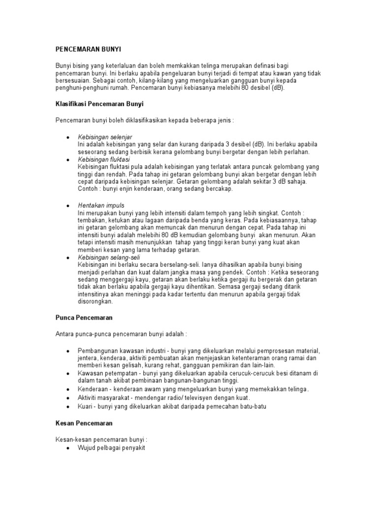 Masalah Pencemaran Global Langkah Langkah Mengatasi Pencemaran Bunyi